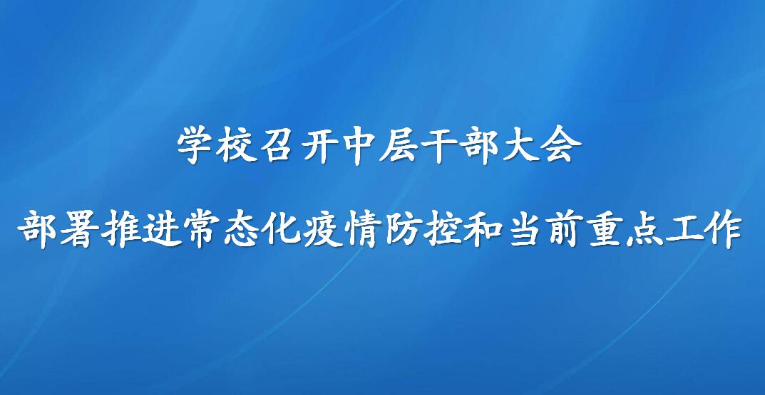 4月29日上午,学校在广学楼报告厅召开中层干部大会,就进一步推进学校常态化疫情防控工作,统筹抓好当前重点工作进行部署。全体校领导和中层干部参加会议。党委书记郑文堂作主题讲话,并就学校当前工作进行了部署和安排,确保进一步抓细抓实各项重点工作,做好“十三五”收官和“十四五”规划工作。一是精准有效抓好常态化疫情防控工作。继续对学生实施精准动态管理,加强思想政治教育和心理疏导;全校上下齐心协力做好毕业生...
